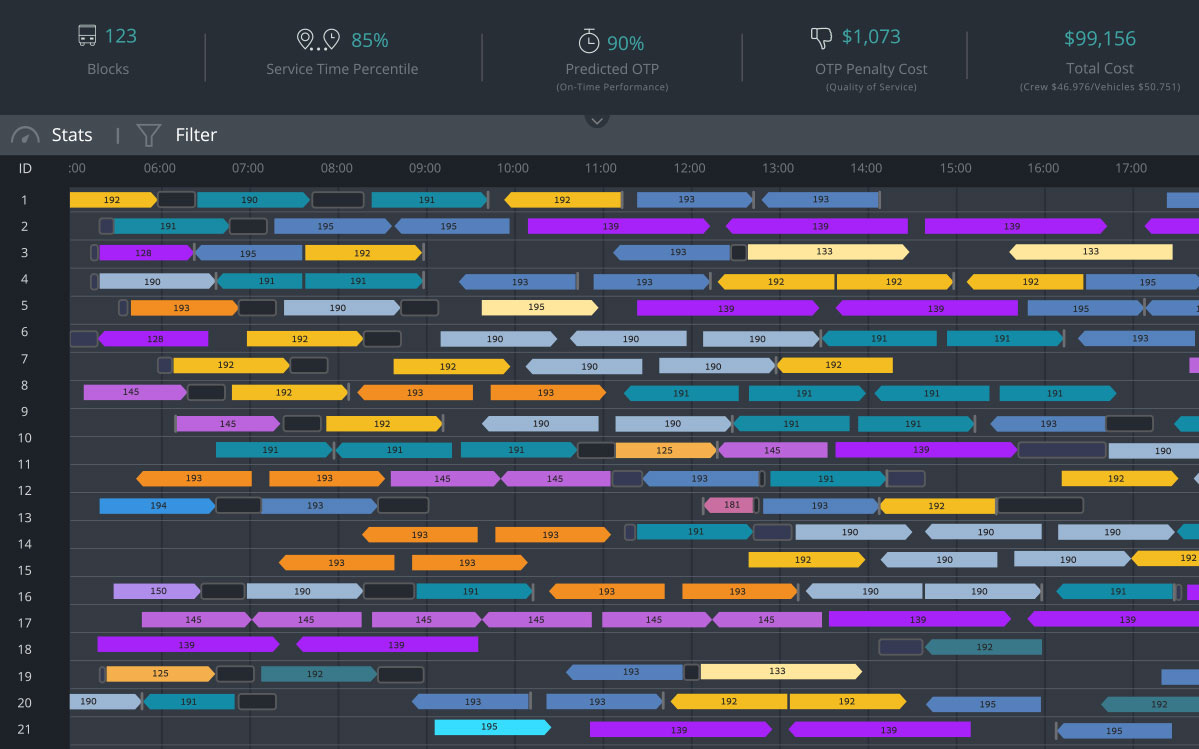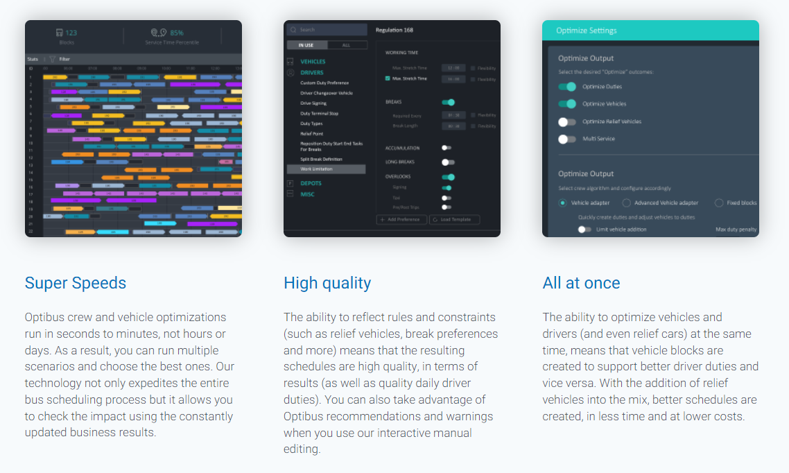 Optibus provides AI-based planning tools — that help transportation organizations ascertain how best to manage mass transit resources against rush hours, slow periods, social distancing rules, and more