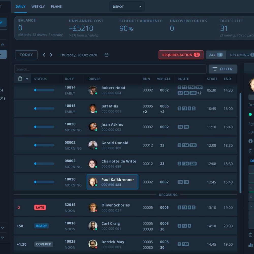 Operators can bid and win tenders, visualize the transport network, adjust routes and timetables, make performance requirements, analyze operating metrics, and more.