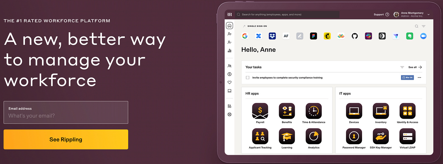 At its core, Rippling is a horizontal software platform for workforce management in a sea of point solutions.