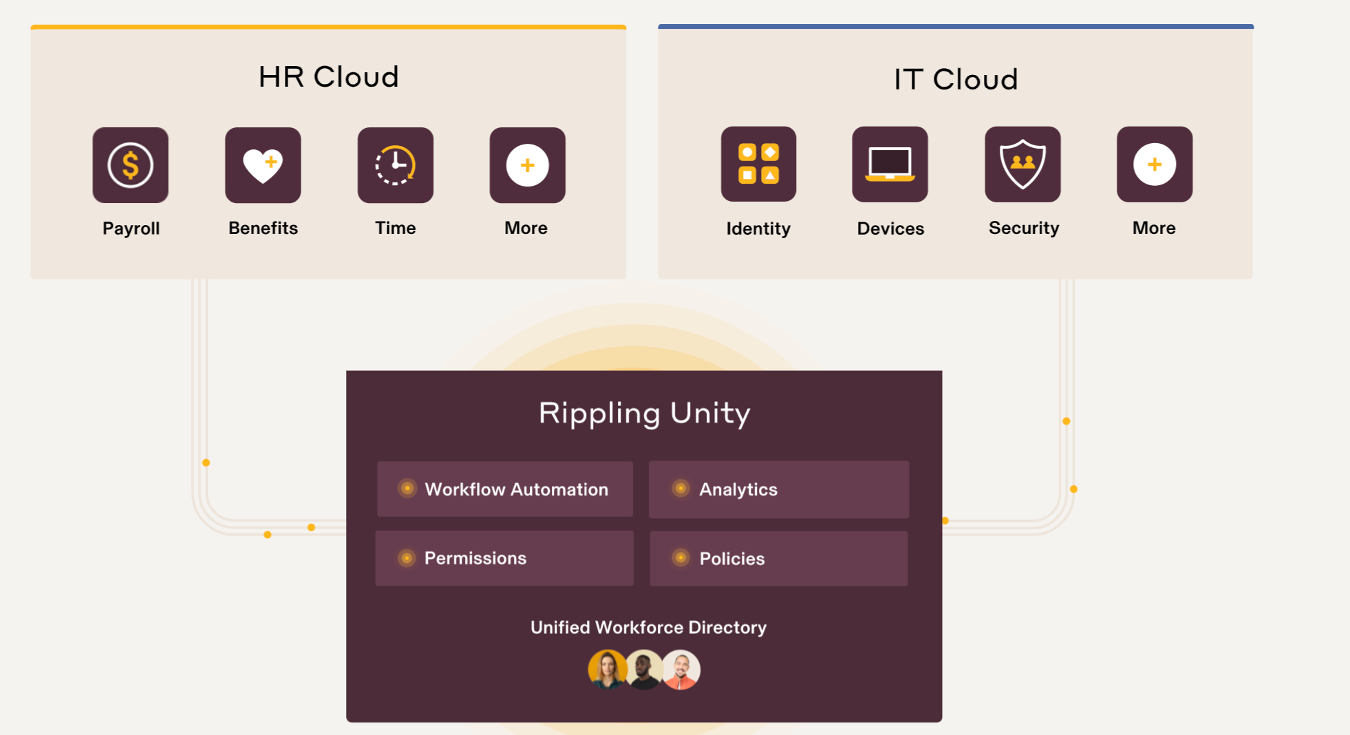 Rippling offers two distinct products, a set of HR cloud products and an IT cloud product.